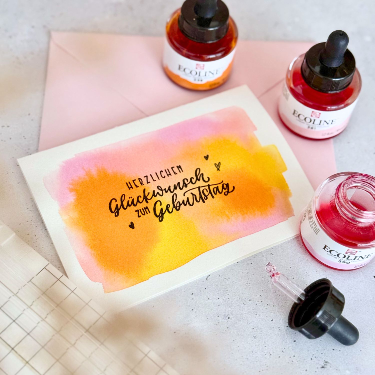 Mit 300 g/m² und einer leicht strukturierten, matten Oberfläche ist es die ideale Basis für leuchtende Farben und schöne Verläufe. Dank der oberflächengeleimten Struktur nimmt das Papier Farbe optimal auf – egal ob Aquarell, Gouache, Acryl, Tinte oder Aquarellstifte.