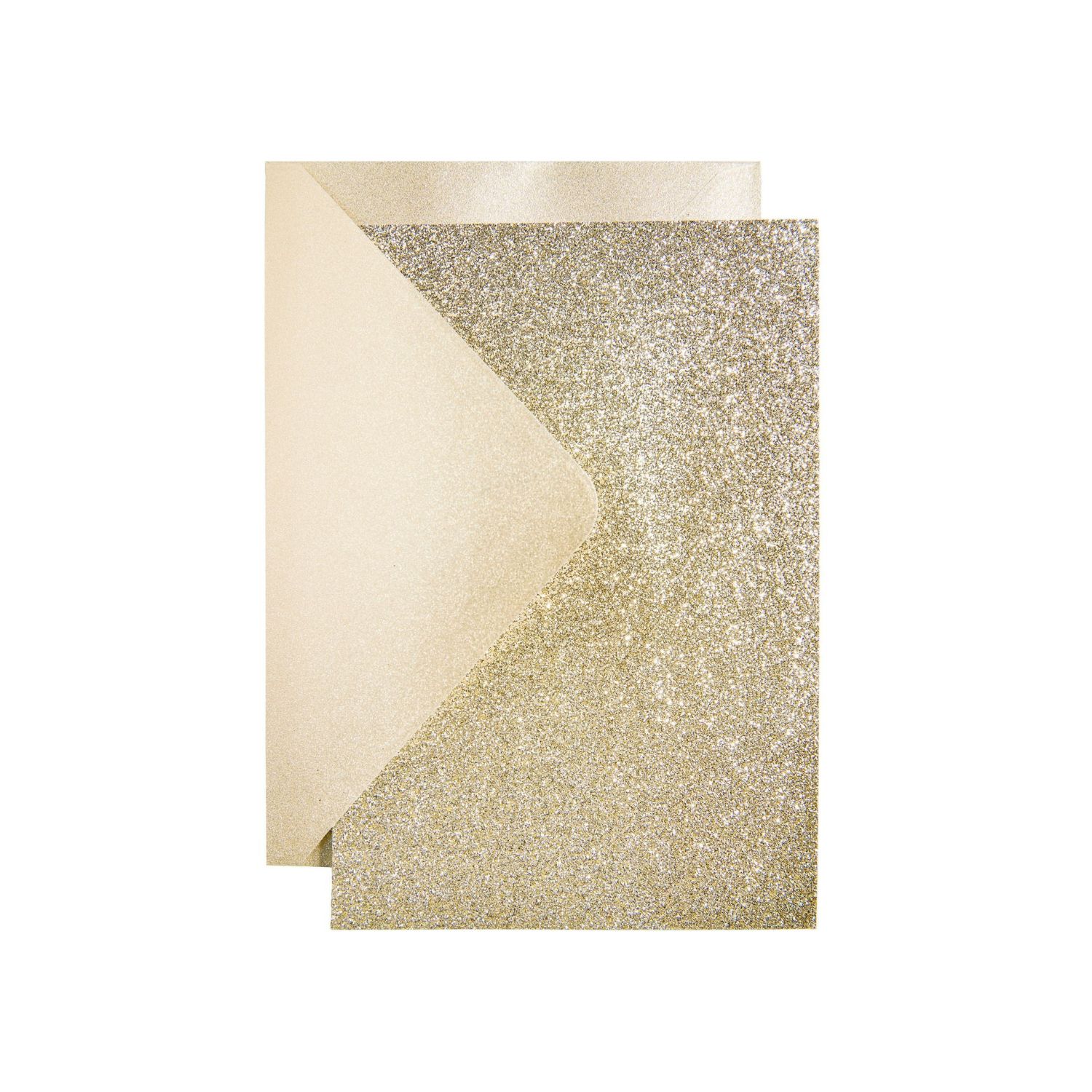 Mit diesem Kartenset bleiben deine Worte bestimmt in Erinnerung! Das Set enthält acht Klappkarten mit goldenem Glitter-Effekt sowie acht passende Umschläge. Diese können mit anderen Papierartikeln oder dekorativen Schleifenbändern ganz individuell gestaltet werden.