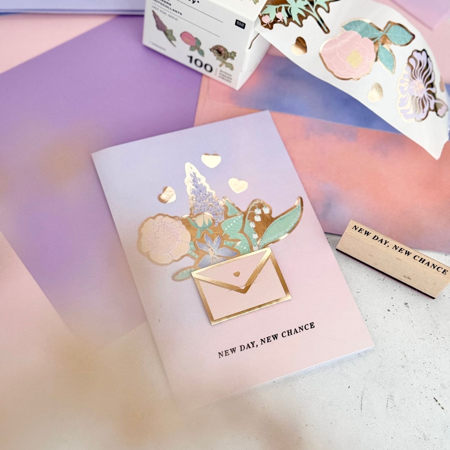 Das Paper Poetry Sticker-Set „The Sky is the Limit – Blumen“ enthält 100 florale Sticker, die jeweils mit einer goldfarbenen Hot-Foil-Veredelung versehen sind und dadurch einen dekorativen Glanz erhalten. Mit einer Größe von etwa 5 × 5 cm eignen sich die Motive ideal zum Gestalten von Karten, Notizbüchern, Geschenkverpackungen oder anderen kreativen Projekten. Die plastikfreie Verpackung unterstreicht den nachhaltigen Charakter des Sets und macht es zu einer vielseitigen Ergänzung für verschiedene Dekorationsideen.