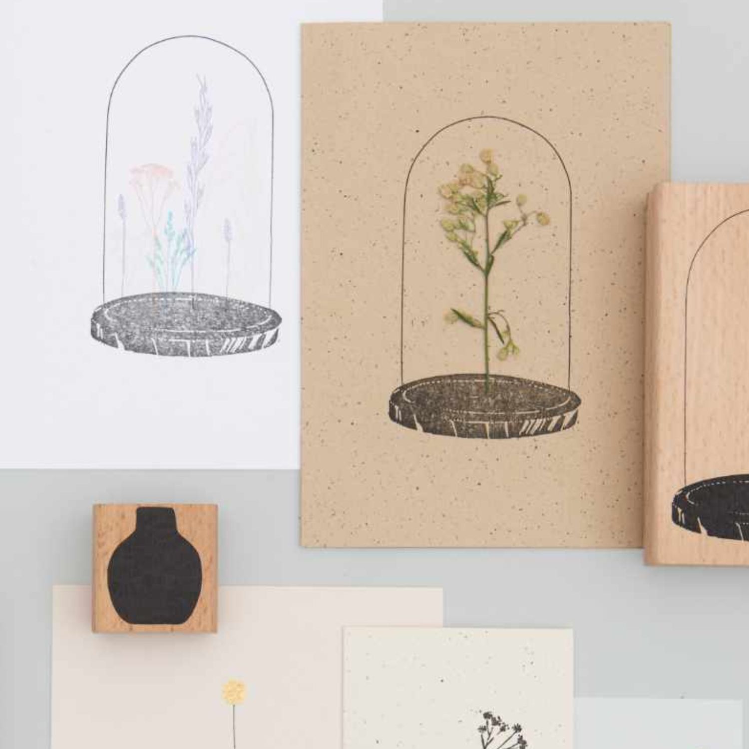 Stempel mit dem XL Holzstempel von Paper Poetry eine Glasglocke auf eine Karte (z.B. Paper Poetry Klappkarten Offwhite oder Cappuccino) und verziere das Innenleben nach h´Herzenslust. Besonders schnell und eindrucksfoll klappt das mit gepressten Blüten und/oder blumigen Stempelsets.