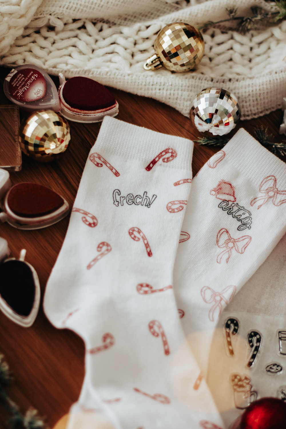 - Schriftzüge: Cookies for Santa, Merry & Bright, frecht!, artig, Kiss me on a cold night