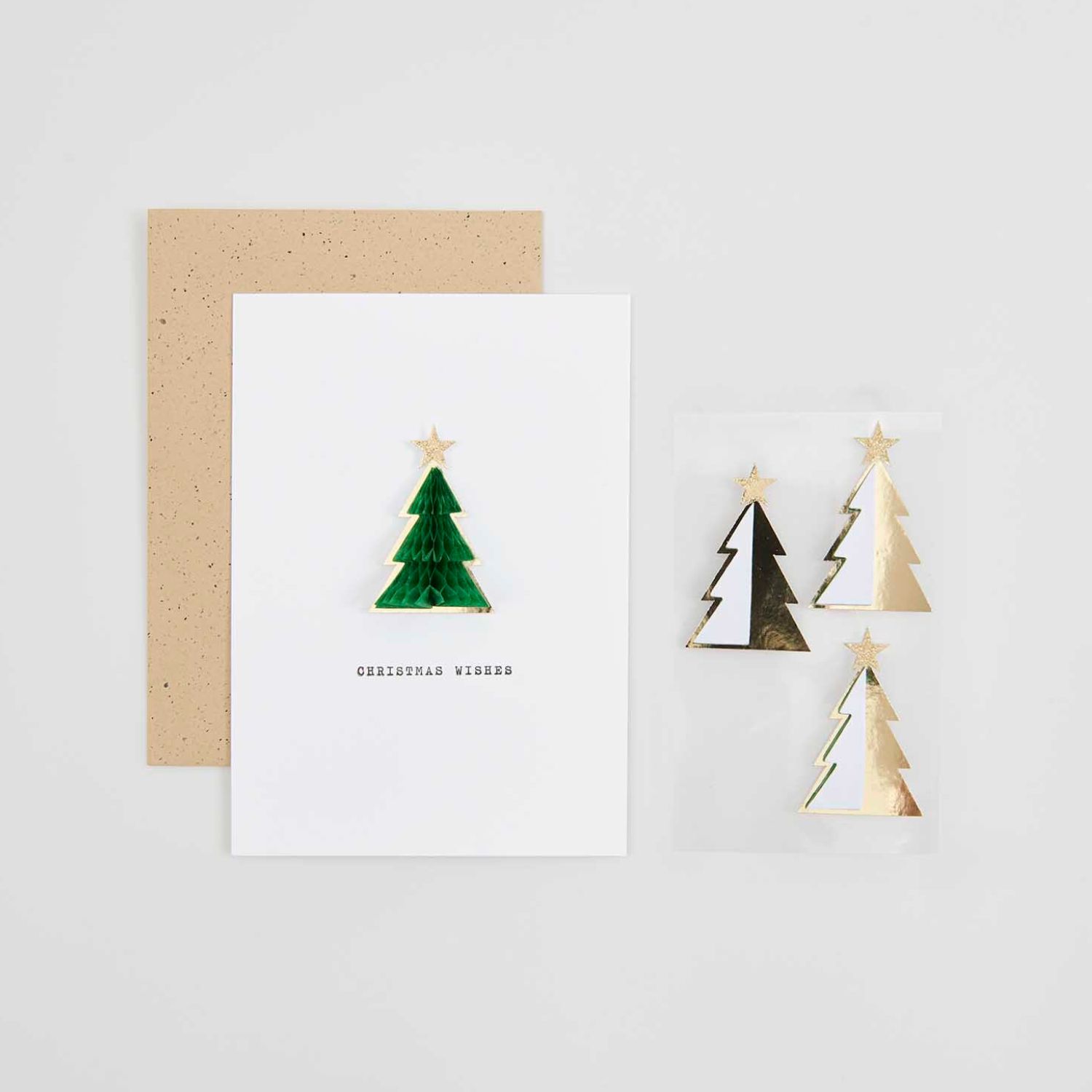 Mit den Wabenpapierstickern in Tannen- oder Sternform kannst du ganz einfach besondere Weihnachtskarten gestalten. Einfach das Trägermaterial abziehen, das Wabenpapier aufkleben und fertig ist die besondere Weihnachtskarte mit Pop-Up Effekt!